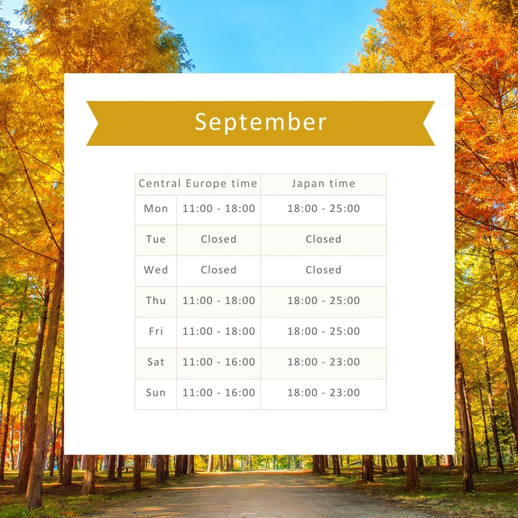 2025年9月の営業日のお知らせ 2025 9/01 お知らせ 2025年9月1日2025年11月11日 2025年12月に日本各地で個別相談会を行います。詳しくはこちら 今月の営業は下記の通りです。 9月はアイルランドの祝日がないため、火・水曜日が定休日です。オランダと日本の祝日は営業しています。 今月もよろしくお願いします。 無料オンライン相談も実施中! 英語スキルを伸ばす「あなたにピッタリの留学プラン」を一緒に探しましょう \ 大人気 /無料のオンライン個別相談 \ 気軽に相談 /まずはメールで留学相談 お知らせ よかったらシェアしてね! URLをコピーしました! URLをコピーしました! 第3回2025年秋の個別相談会のお知らせ 2025年10月の営業日のお知らせ この記事を書いた人 ヨーロッパ留学エージェント オランダにある現地留学エージェントです。ヨーロッパ在住歴が長いからこそ分かる、「ヨーロッパ留学に役立つ情報」をお届けするブログです。 非英語圏の留学は分からない事だらけで尚且つ現地エージェントが少ないのが現状です。現地在住だから分かる「リアルなヨーロッパ生活」や「最新のビザの情報」「私たちの日常生活」「お客様の声」などをお届けできるように運営しています。 ご希望の記事や知りたい事などがあればお気軽にご連絡下さい。 オンライン相談も受付していますので、是非お申込みください。 関連記事 2025年11月の営業日のお知らせ 2025年11月1日 2025年10月の営業日のお知らせ 2025年10月1日 第3回2025年秋の個別相談会のお知らせ 2025年8月7日 2025年8月の営業日のお知らせ 2025年8月1日 2025年7月の営業日のお知らせです。 2025年7月1日 NStrainストライキ情報のご案内 2025年6月7日 2025年6月の営業日のお知らせ 2025年6月1日 ヨーロッパ留学情報が提供する現地サポートについて 2025年5月25日