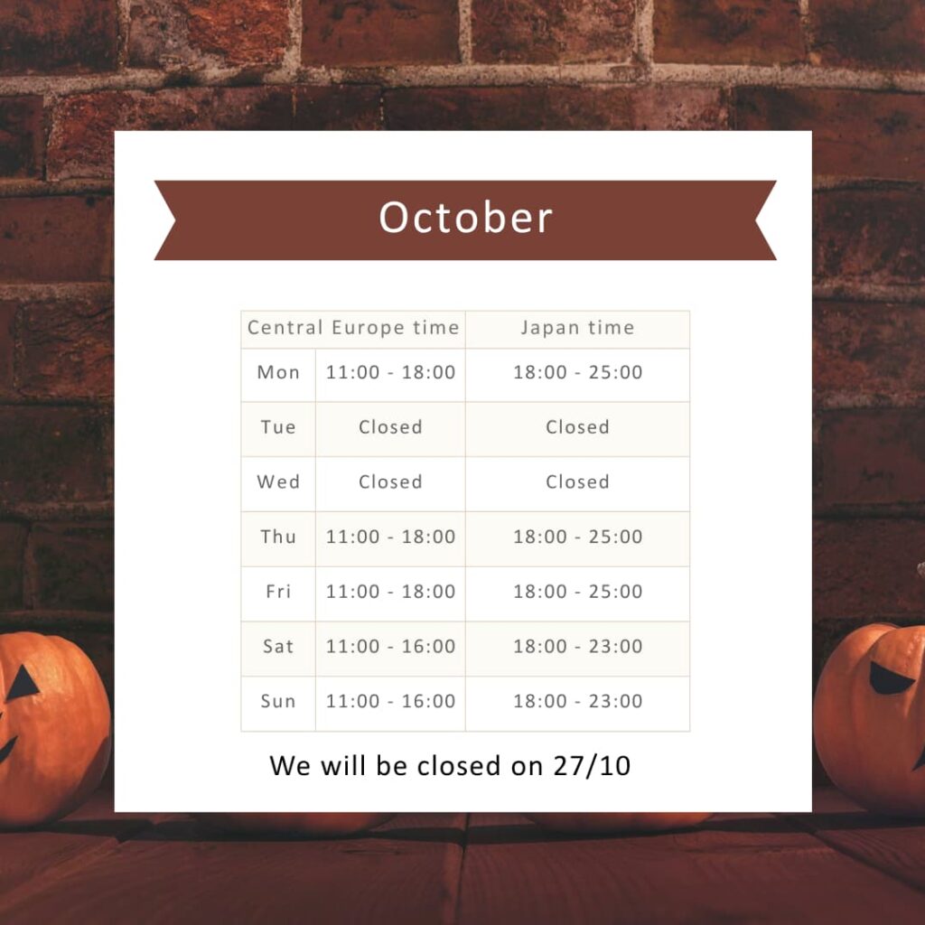 9月はアイルランドの祝日がないため、火・水曜日が定休日です。